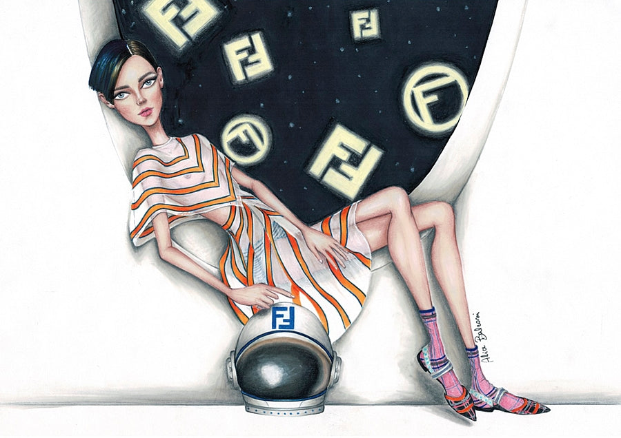 Dreamy big eyes girl inspired by look from Fendi Spring 2018 ready to wear collection.